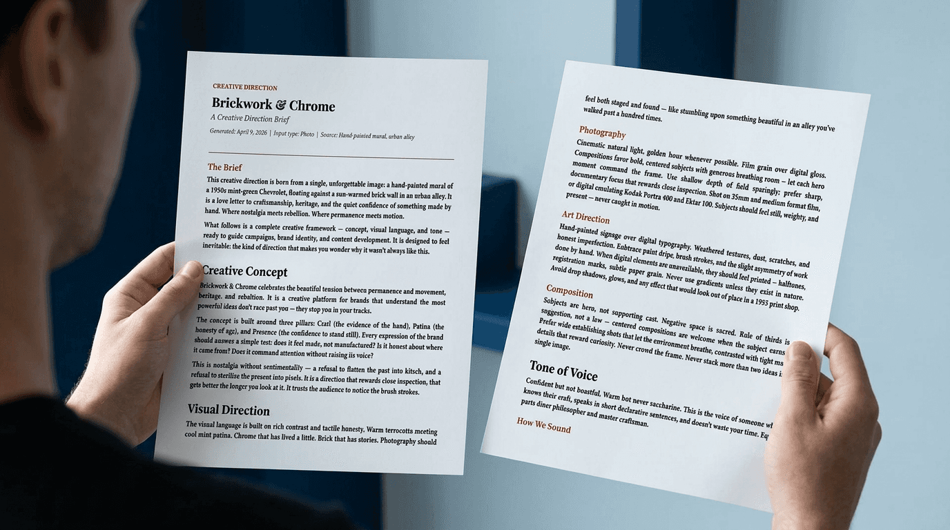End-to-end creative direction delivered in seconds.